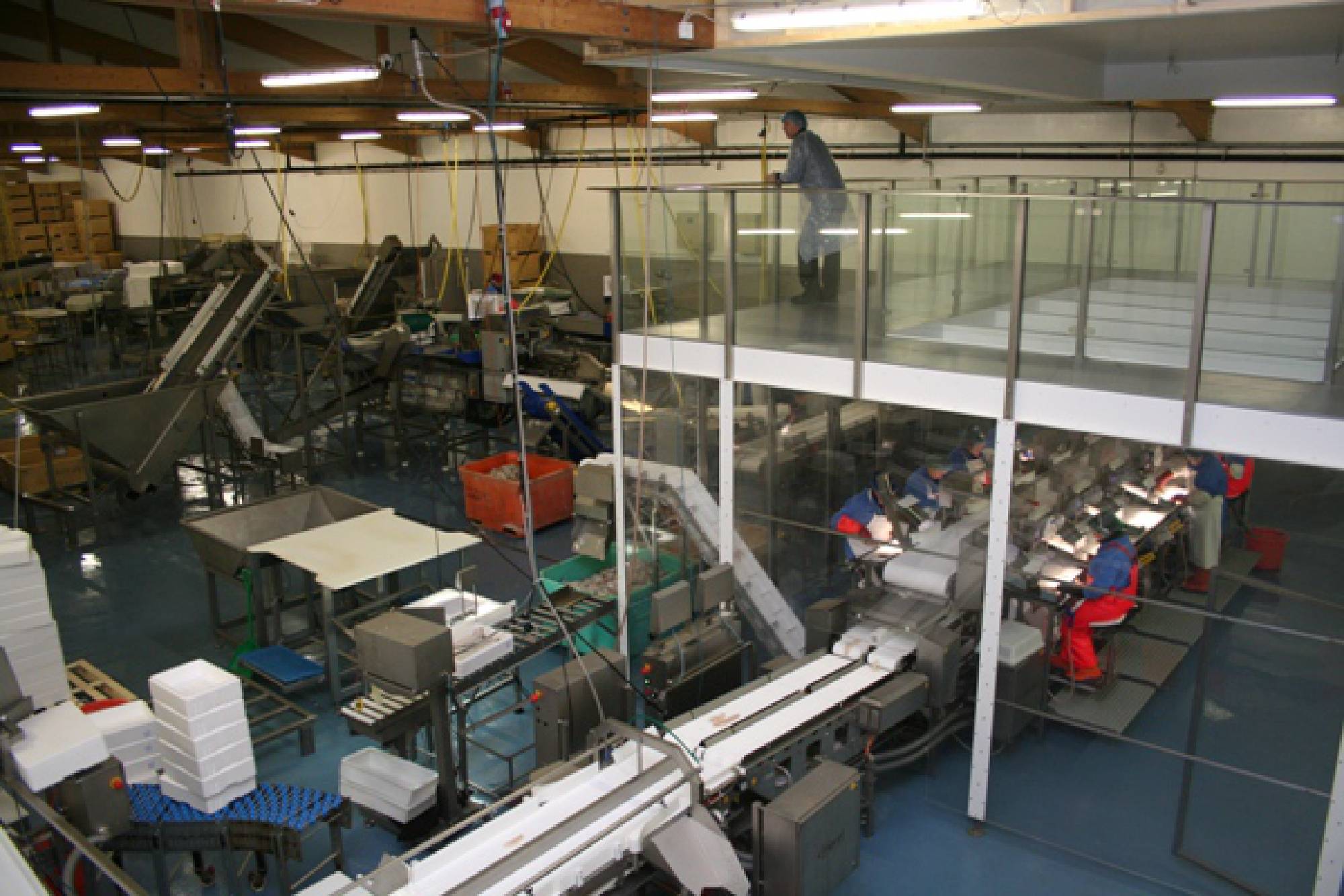 Svo framar að þú hellir ekki drykk yfir þig ertu alveg laus við að blotna innandyra hjá okkur. Sýningin fer að mestu leyti fram í okkar veislusal þar sem eina bleytan eru svalir eða heitir drykkir sem við bjóðum uppá. Pallurinn er hátt fyrir ofan vinnsluna svo að engin/nn blotni.